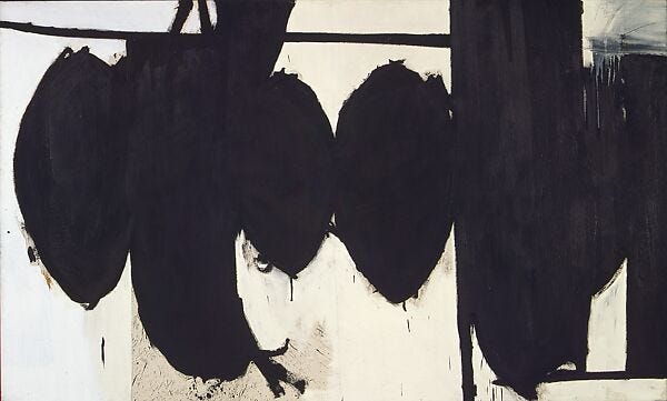 This gives us the idea that silence is defined through negative space - by what it is not. Robert Motherwell uses negative space well in his series of Paintings, “Elegy to the Spanish Republic.”
